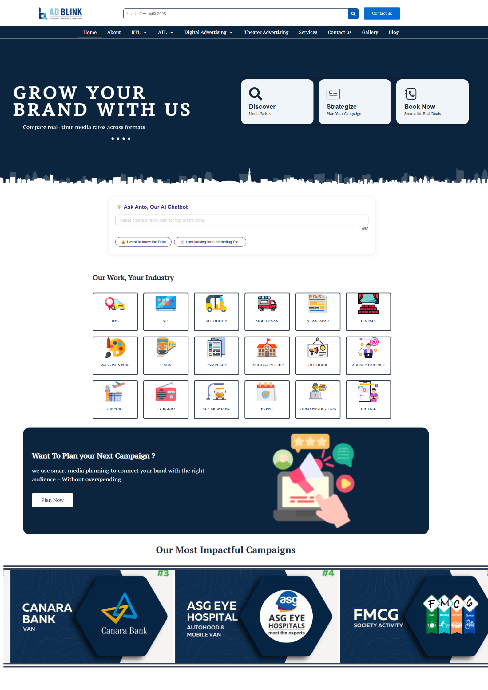 Designed and developed a professional WordPress website for Adblink Media showcasing BTL, ATL campaigns and digital marketing services with portfolio layout and contact integration.”