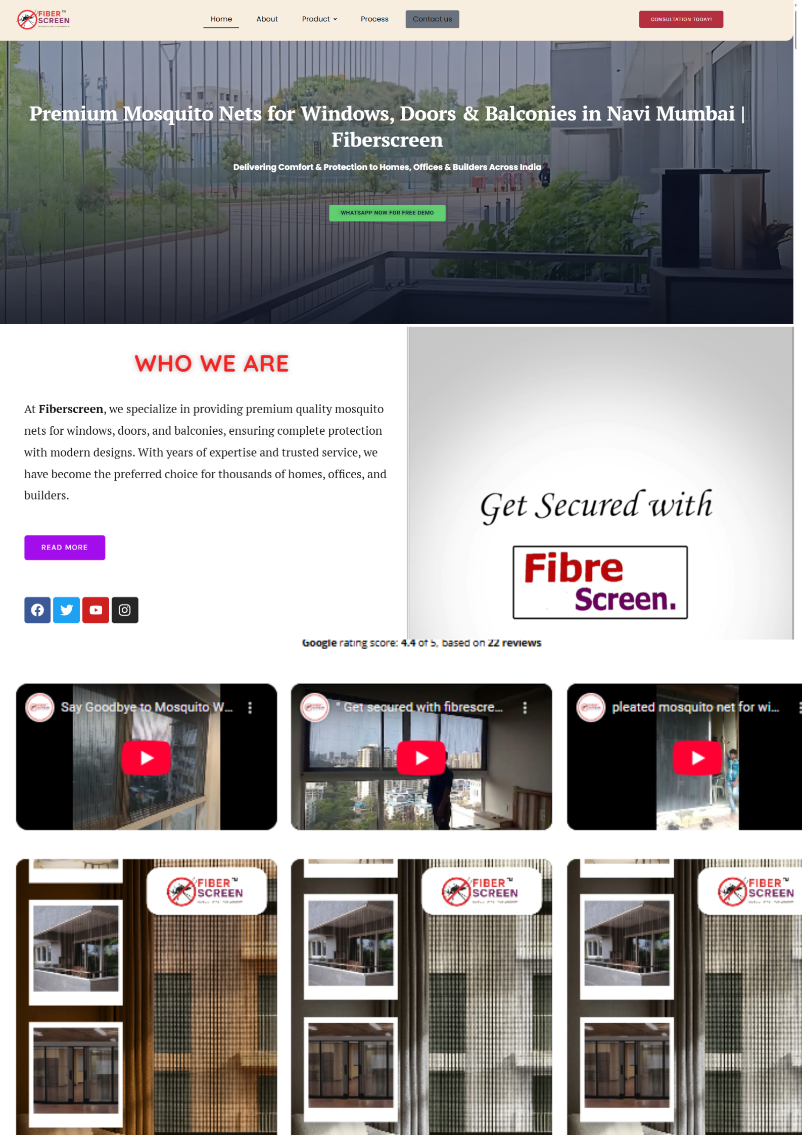 “Developed a clean and responsive WordPress website for Fiberscreen to showcase mosquito net products, including product gallery, contact form, and easy navigation for customers.