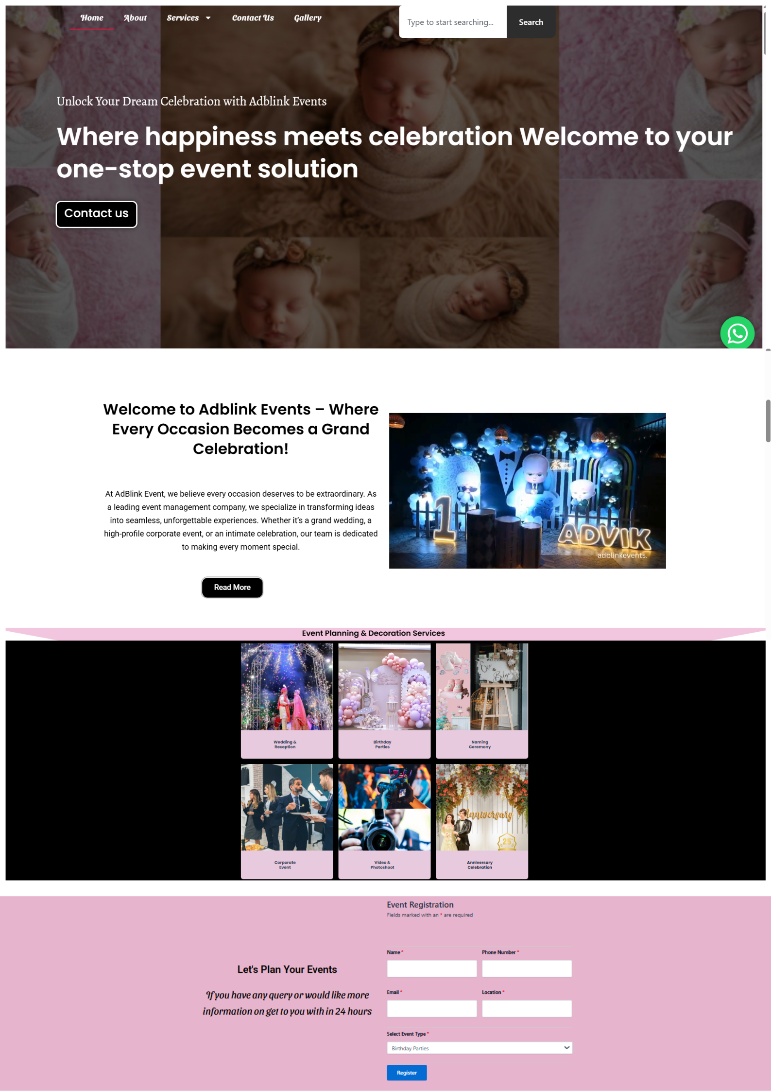 Developed a responsive WordPress website for Adblink Events to showcase event management services, including birthday decorations, corporate events,